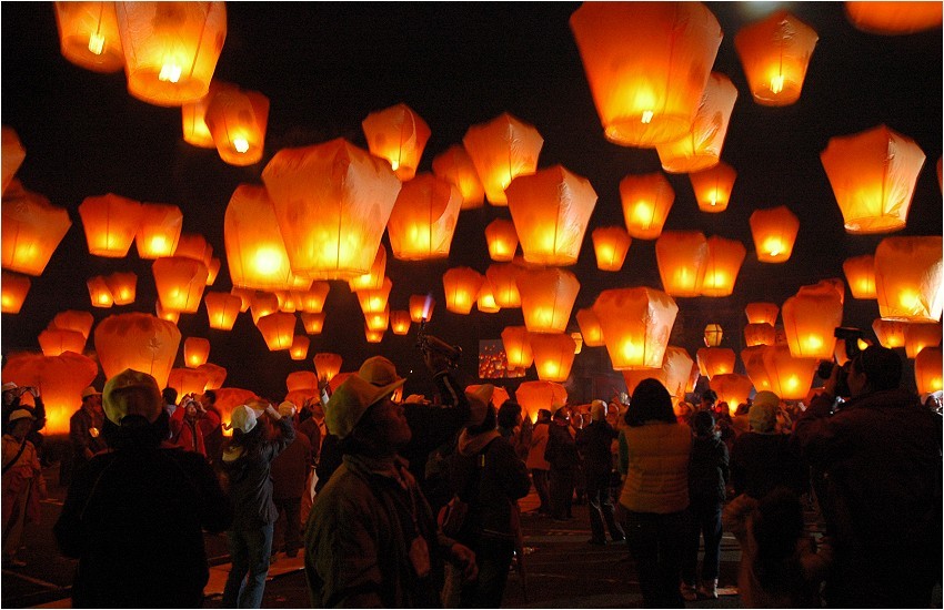 成群的天燈齊放,有如一團團火球騰空飛起,令人目不暇給,平溪鄉的天燈祈福大典,已成為北台灣最具民俗色彩的文化活動。